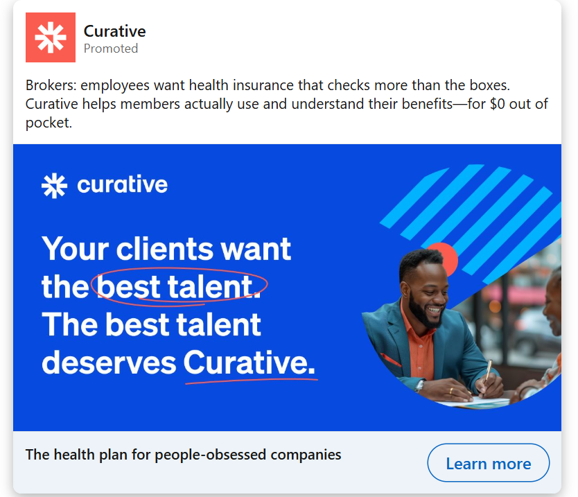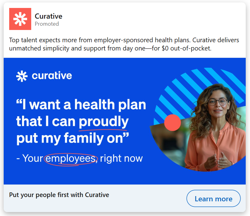 Curative is fixing everything that’s wrong with status quo employee health plans. They had a well-oiled content marketing engine, but needed help turning their editorial pieces into high performing B2B ads.